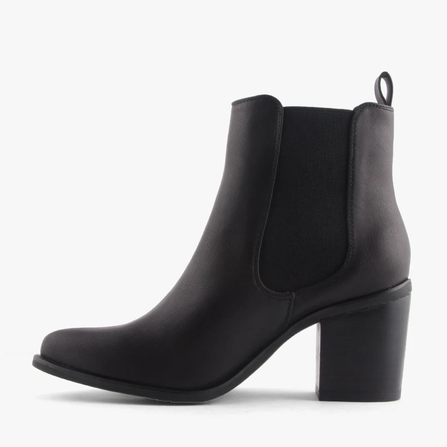 Dress up with Samantha by Verali. Samantha is an elastic sided women’s dress boot that features an on trend pointed toe and a smart leather-look upper.