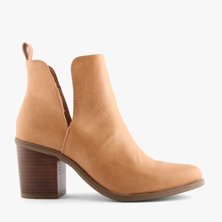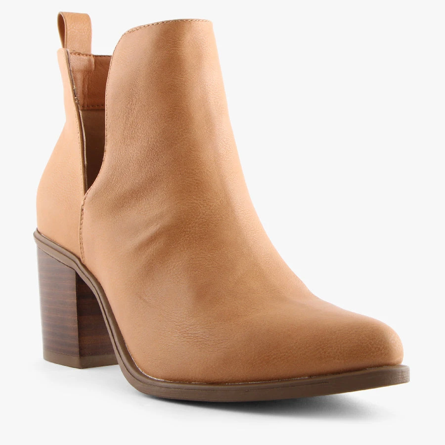 Santana by Verali is a women’s dress boot that features a block heel, pointed toe and statement cut out sides.
