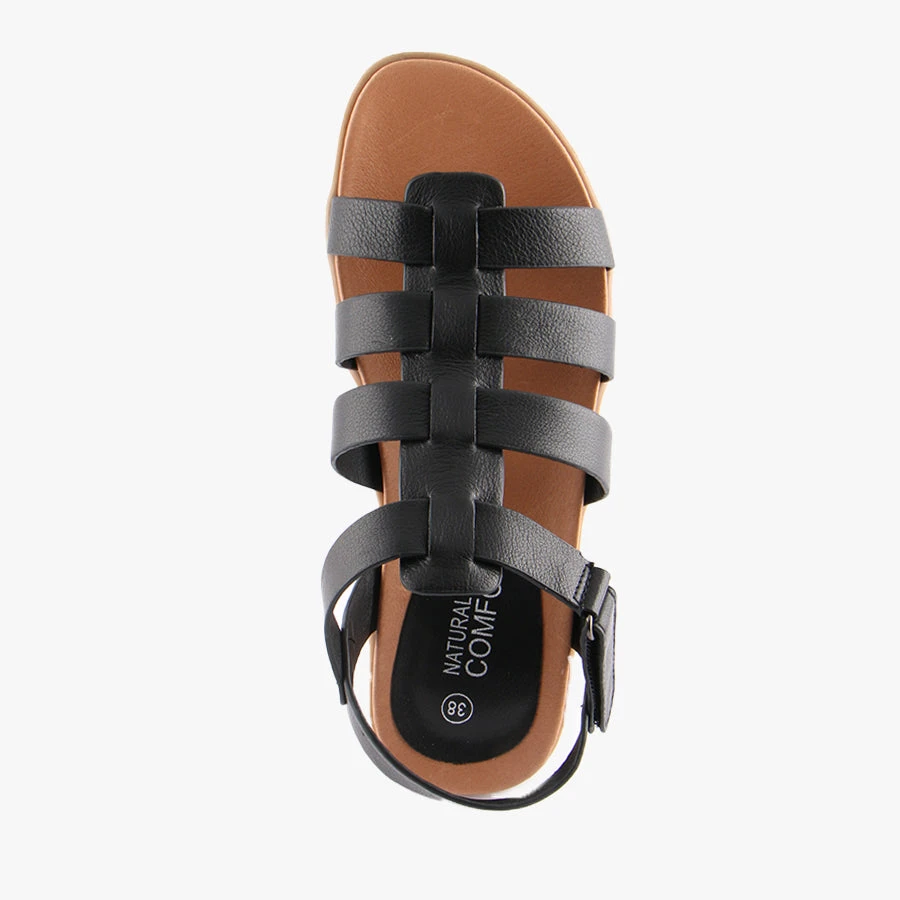 Shanae by Natural Comfort is a women’s leather sandal featuring a thick self-fastening ankle strap, contoured insole with a low wedge and generous tread designed to keep your feet secure.