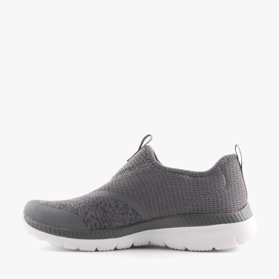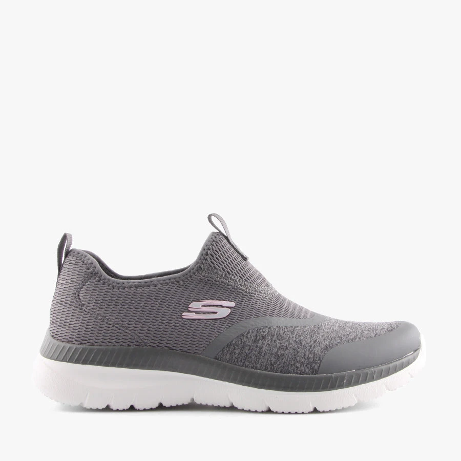 Find comfort in 149222 Bountiful by Skechers. This women’s sneaker is a slip on design that features a comfortable lightweight upper and soft supportive memory foam insole. A machine washable design.