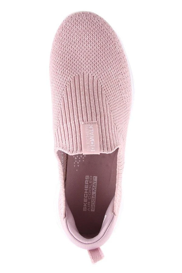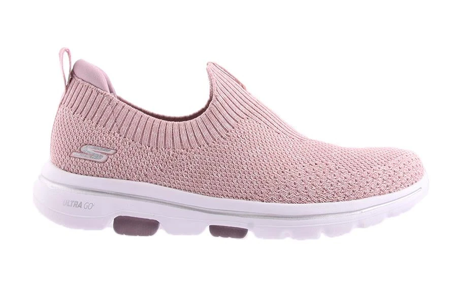 Go Walk 5 Trendy by Skechers is a woman’s slip-on sneaker style with a comfortable woven stretch fit upper, signature Goga mat insole and padded collar for extra comfort.