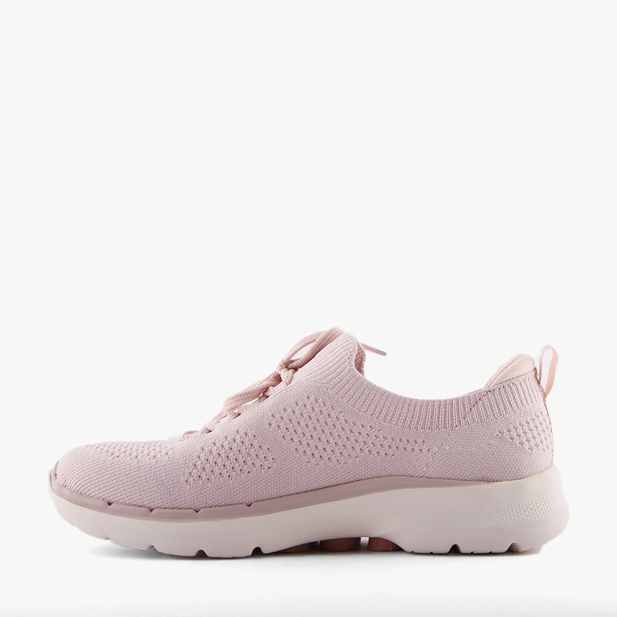 Go Walk 6 894117 is a women’s slip on sneaker that features a breathable knit upper with a stretch-laced front and a stretch fit slip on design for a sock like comfortable fit. A machine washable design.