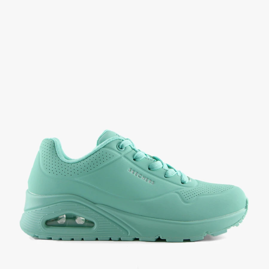 Uno-Bright Air by Skechers is where comfort meets fashion. Uno is a woman’s sneaker that features a padded collar and tongue, perforated details on the toe and collar with embossed accents on the heel and tongue. With an air cooled memory foam insole and an air cushioned shock absorbing heel pad you will be comfortable all day in Uno-Bright Air.