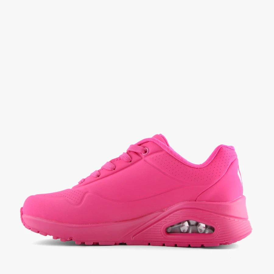 Uno-Night Shades by Skechers is where comfort meets fashion. Uno is a woman’s sneaker that features a padded collar and tongue, perforated details on the toe and collar with embossed accents on the heel and tongue. With an air cooled memory foam insole and an air cushioned shock absorbing heel pad you will be comfortable all day in Uno-Night Shades.