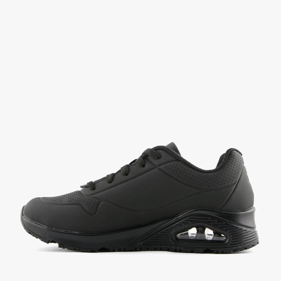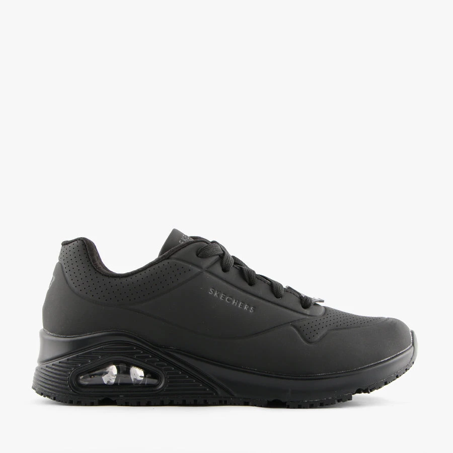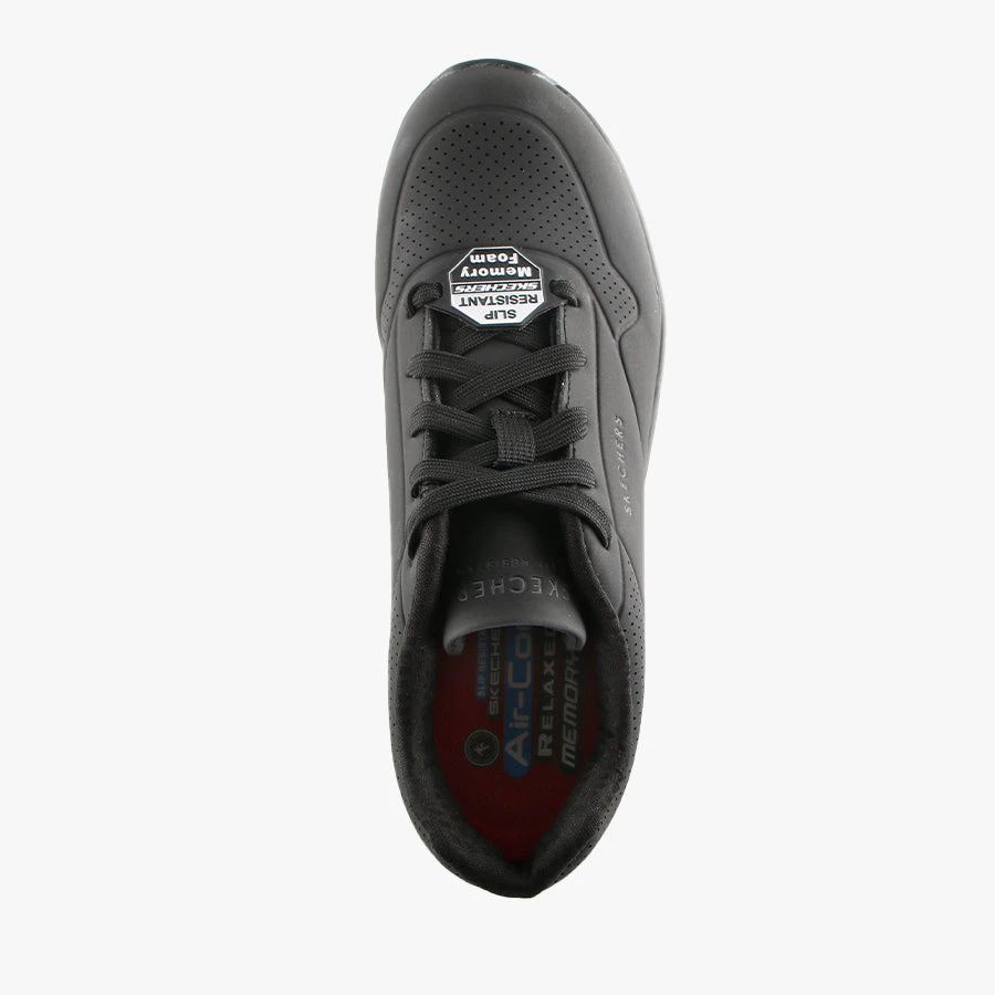 Uno – SR by Skechers is where comfort meets work. Uno – SR is a woman’s lace up sneaker that features a slip resistant traction outsole, is an electrical Hazard Safe design and meets ASTM F2892-17 standards. With an air cooled memory foam insole and an air cushioned shock absorbing heel pad you will be comfortable all day at work in Uno – SR.