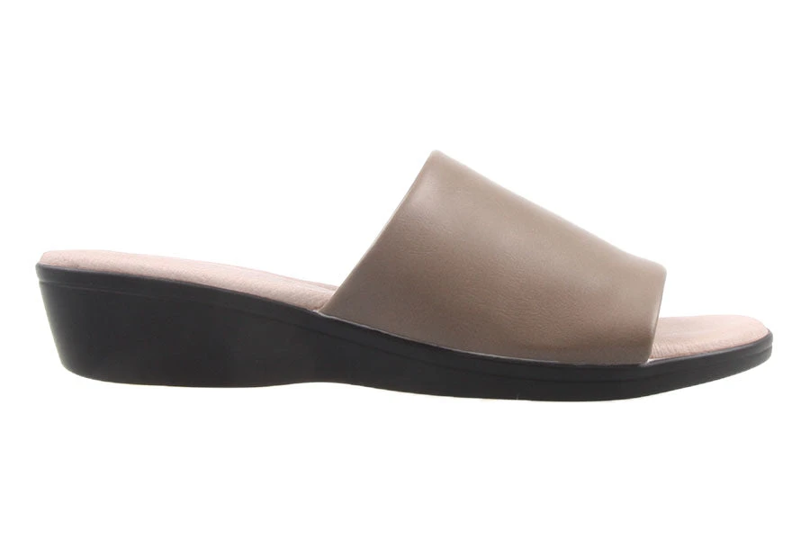 Star by Bellissimo is a classic style slide featuring a smooth upper with a leather lined insole and low wedge outsole.