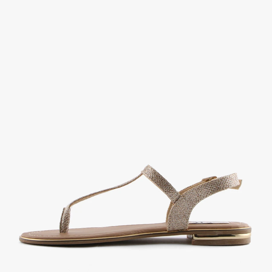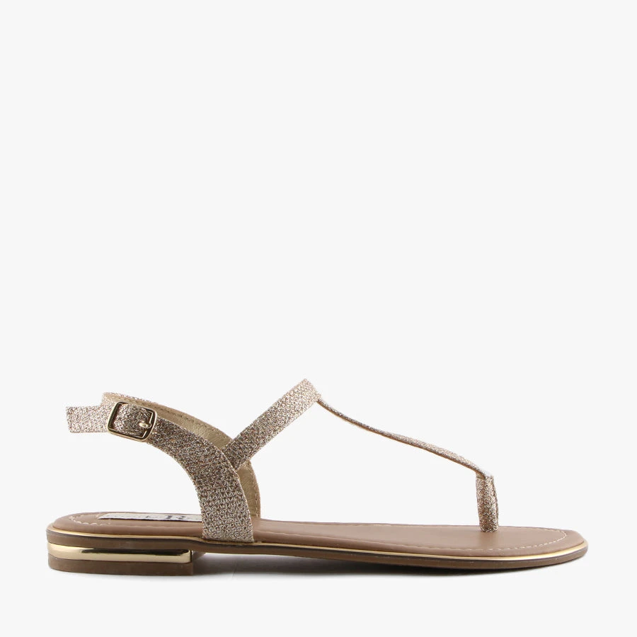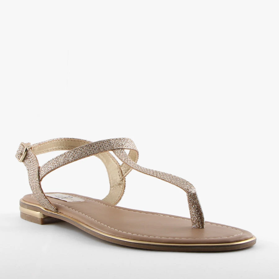 Stara by London Rebel is a simple strappy sandal featuring a fun glitter upper, buckle closure and padded sole.