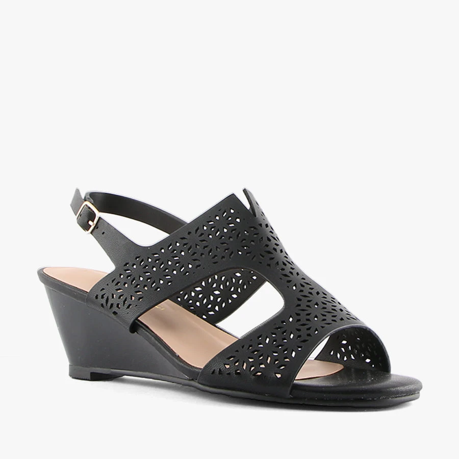 Tender by Simona Ricci is a women’s low Wedge with padded insole for all day comfort. Features an adjustable buckle on the ankle strap and laser cut detailing.
