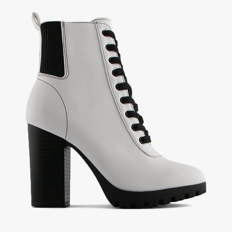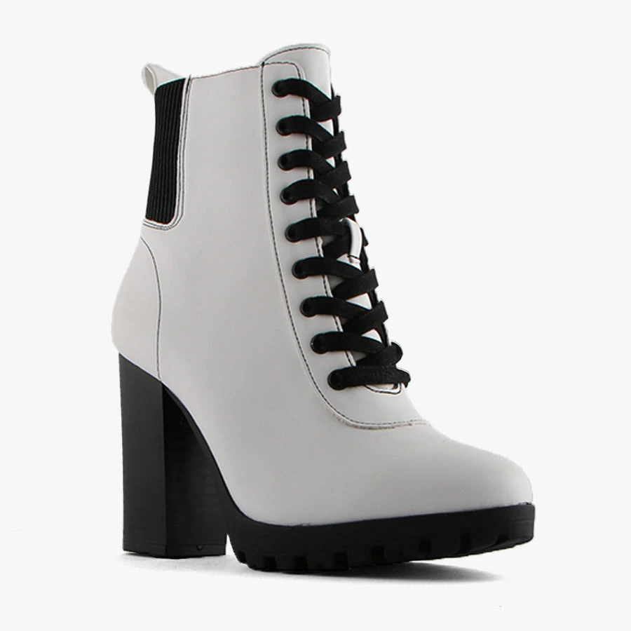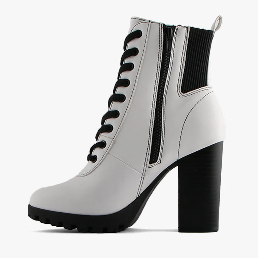 Toga by Pied A Terre is a women’s lace up ankle boot featuring a side zipper on a high stacked heel.