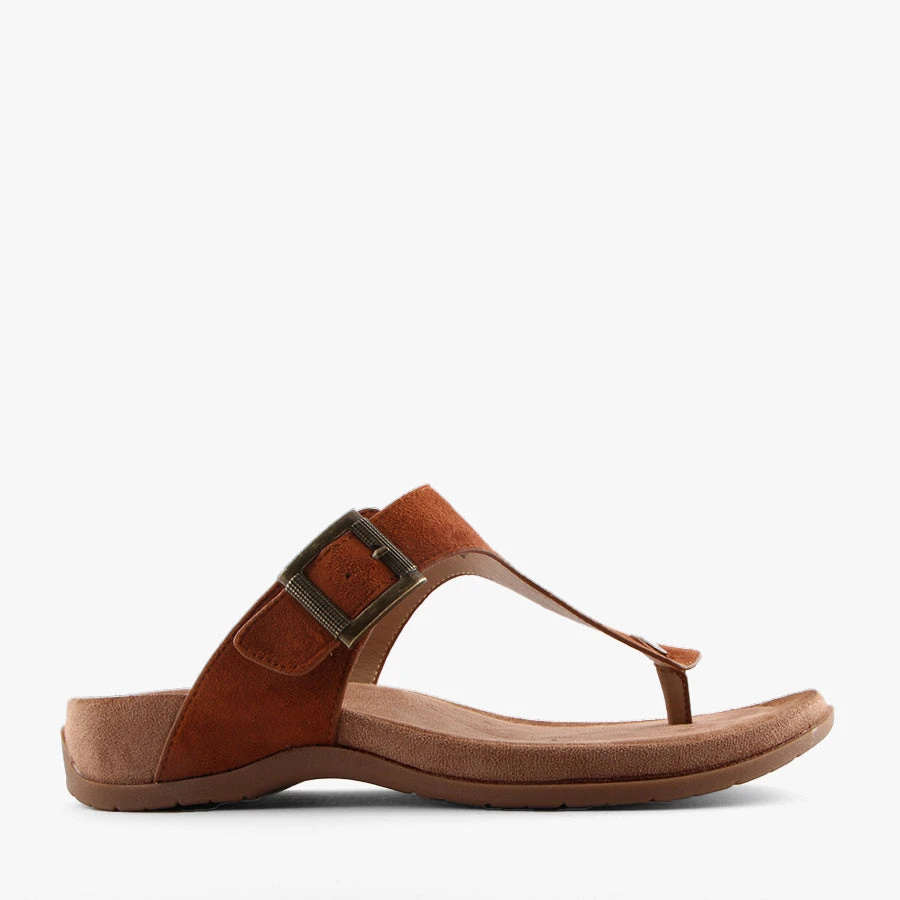 Verve by Laguna Quays Resort is a women’s low wedge thong featuring a soft suede look and an adjustable side buckle strap.