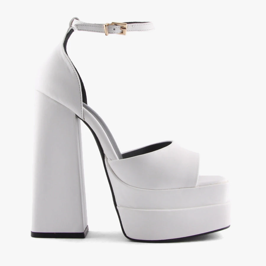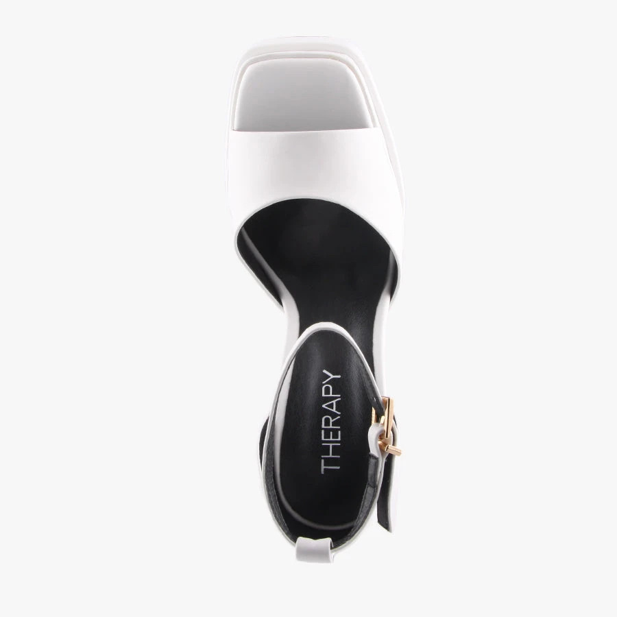 Virtue by Therapy is bringing back those retro vibes. This statement heel features a flared block heel, an on trend square toe design on a statement double platform sole.