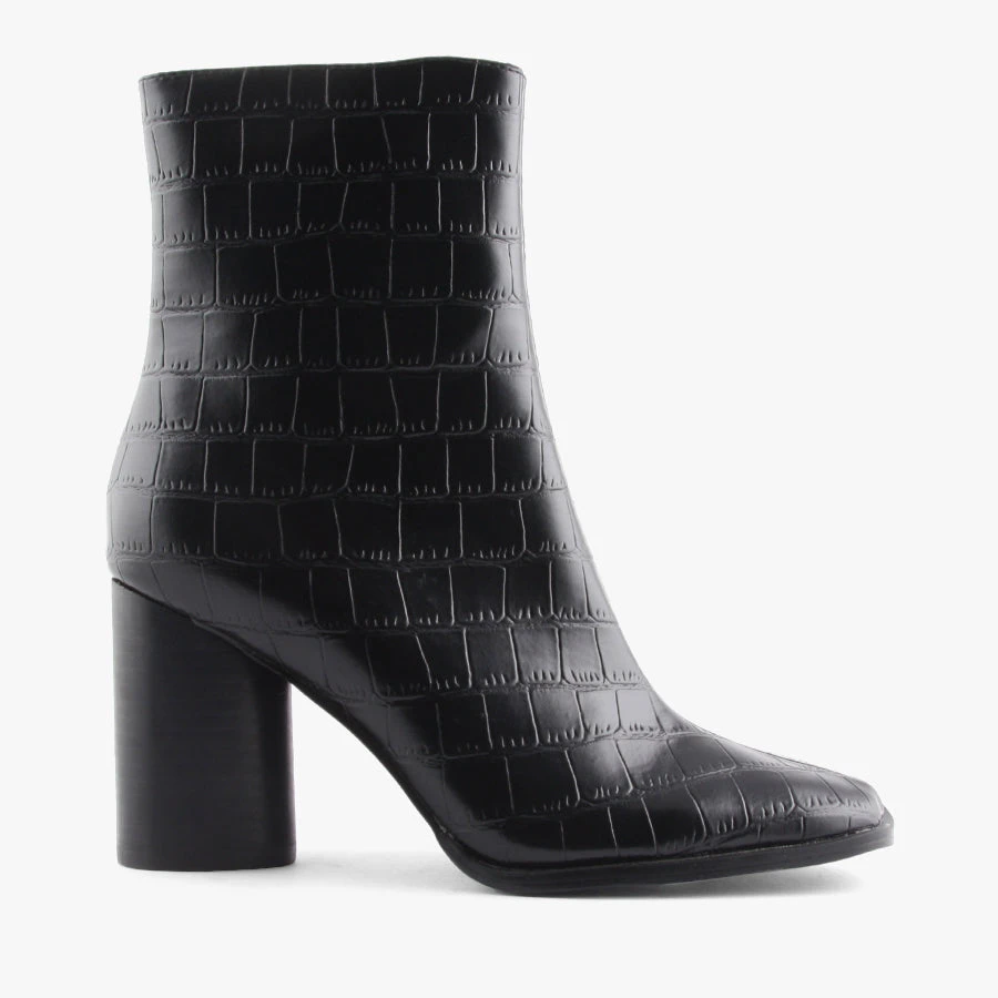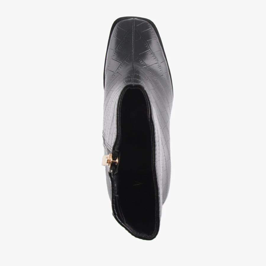 Wendell by Verali is a women’s dress boot that features a smart croc upper, square toe design, inner zip for easy wear and a rounded block heel.