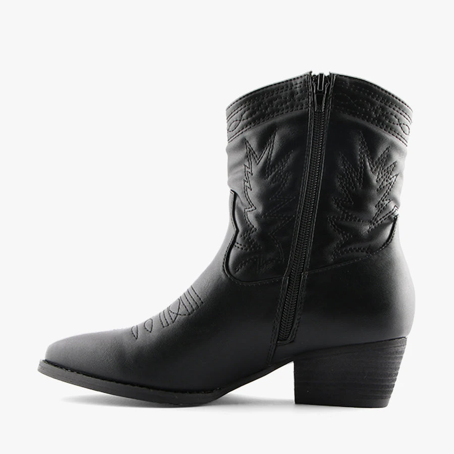 Wilder by Therapy is the latest trend ankle western boot. Featuring Embroidery detail, Cuban heel, pull straps on each side, and a pointed toe!
