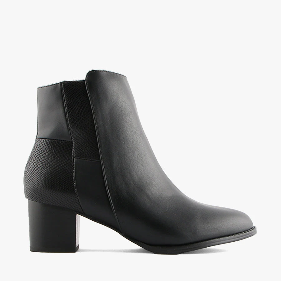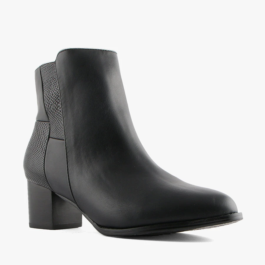 Wizard by Step On Air is a women’s dress boot that features a low stacked heel, full length side zip and statement reptile print panels.