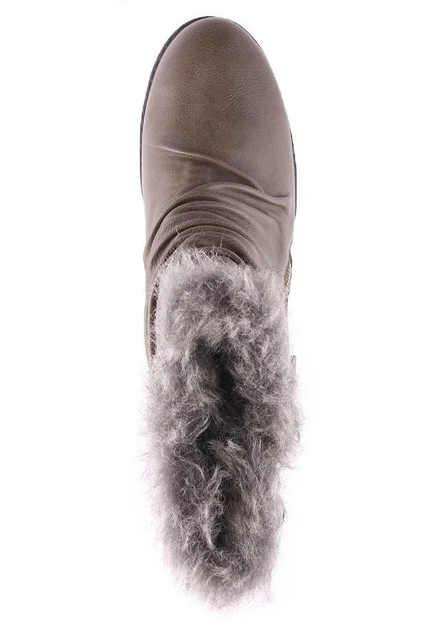Zarina by Bellissimo is a women’s ankle boot that features a sensible wedge, faux fur lining and statement side zip.